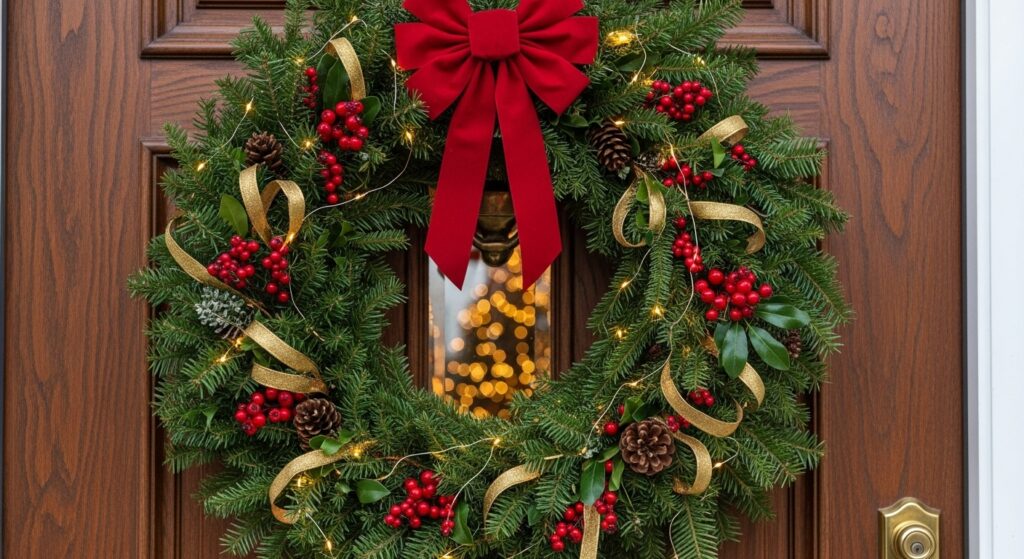 Add red berries, pinecones, and a festive bow for a warm, traditional look that never goes out of style.