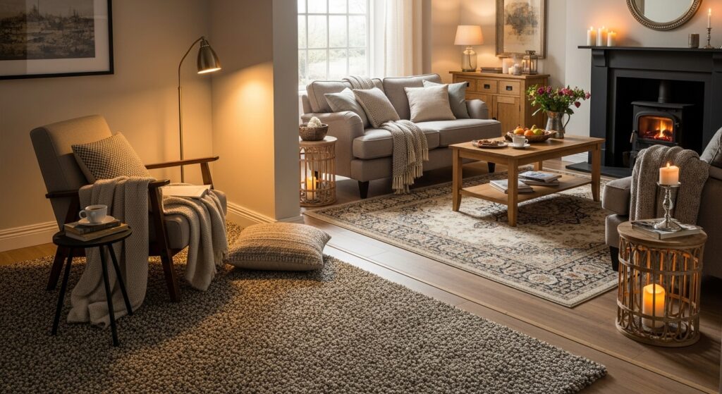 Rugs can instantly make your living room feel cozier by defining areas and adding texture. Choose plush or shag rugs for softness underfoot.