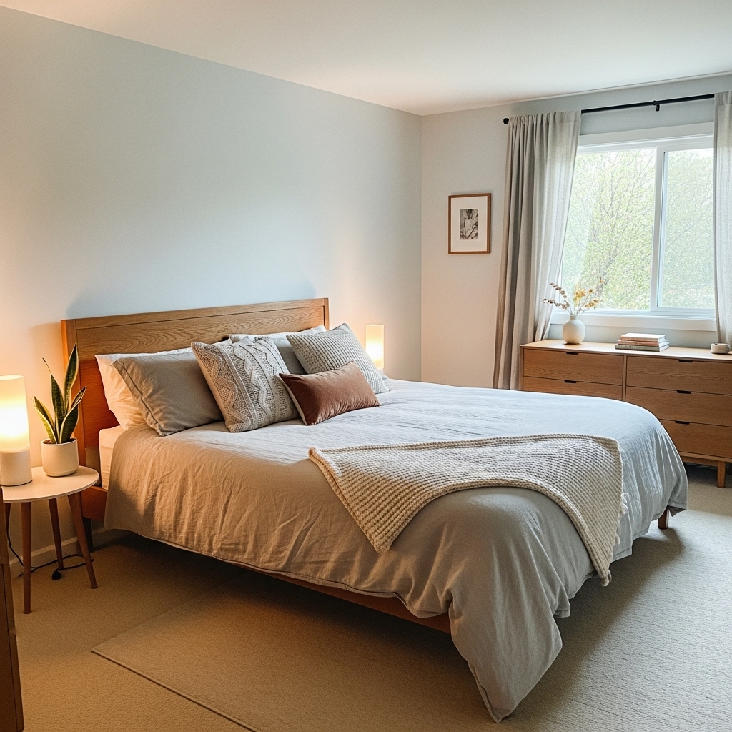 Colors can completely change how your bedroom feels. Soft neutrals like beige, blush, and cream create a sense of calm, while muted blues and greens evoke serenity.