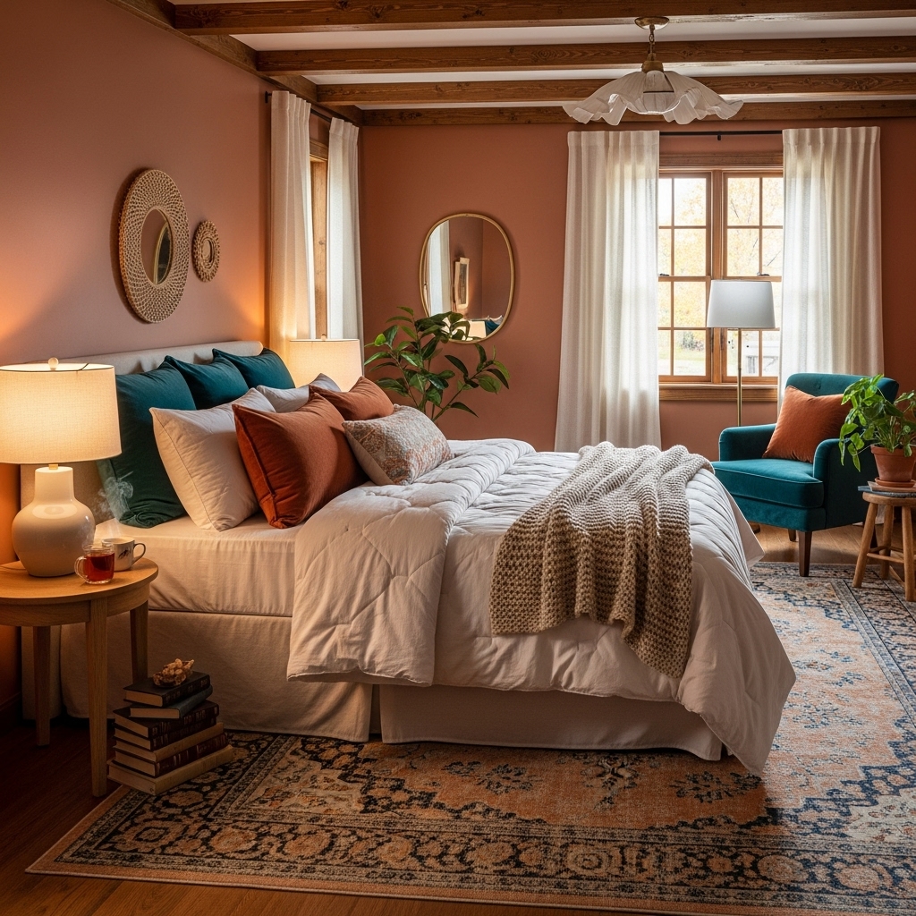 Use color through bedding, curtains, and decor accents to maintain harmony and warmth in your space.