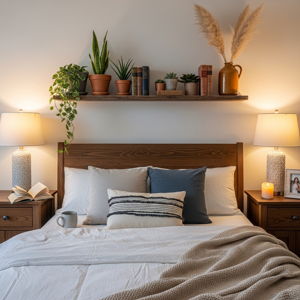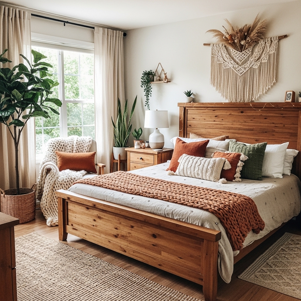Nature-inspired decor instantly adds warmth to any room. Wooden furniture, woven baskets, and potted plants bring organic texture and life to your bedroom.