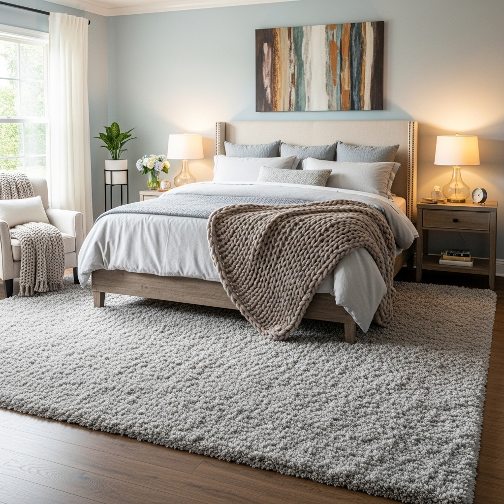 Go for soft textures like shag, wool, or faux fur for maximum comfort.