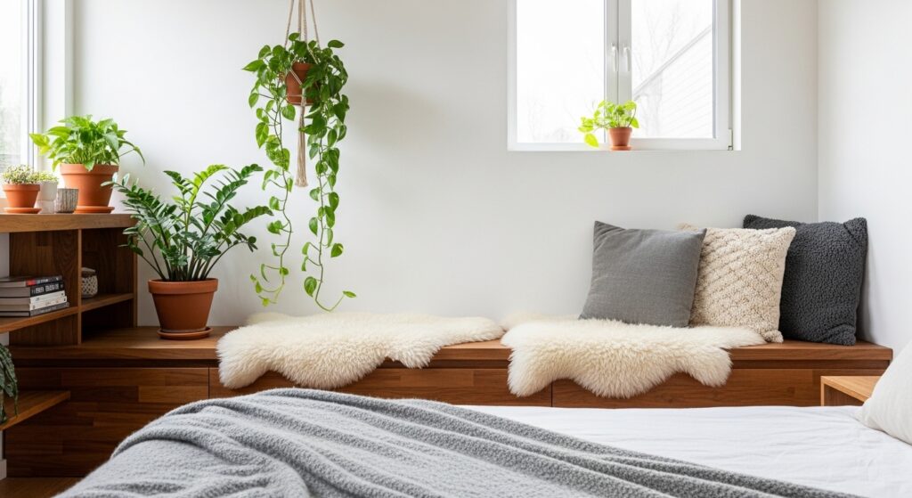 Add textures like faux fur throws or knitted blankets to make your bed irresistibly cozy. These small touches bring warmth and visual depth to the room.