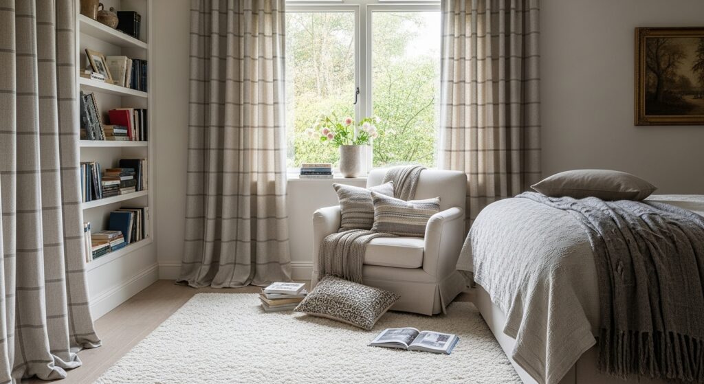 Creating a cozy reading nook within your master bedroom adds both function and charm. Place a comfy armchair by a window, a small side table, and a warm blanket.
