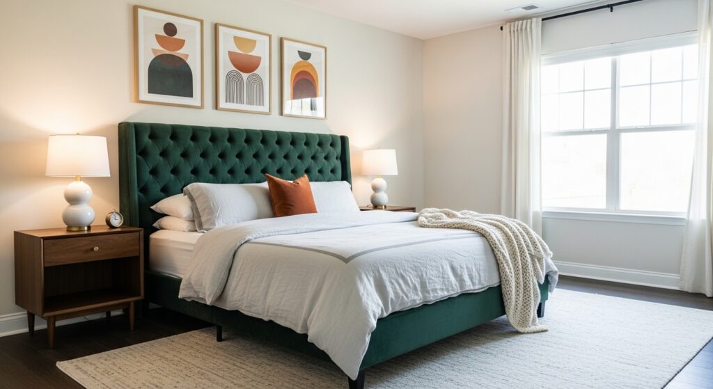 Complement it with wall decor like canvas art, framed photos, or minimalist mirrors above the bed.